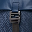 Rucksack Fendi Flux aus wattiertem FF-Nylon in Dunkelblau mit glänzender Struktur mit leichter Relief-Optik. Patte aus glänzendem Kalbsleder in Dunkelblau, verziert mit einem Schnappverschluss aus Metall in FF-Form.