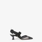 Colibrì Slingback mit elastischen Bändern, die den Fuß umfassen. Sohle mit Gummi-Intarsie. Aus technischem Netzgewebe mit FF Motiv in Schwarz. Kanteneinfassungen aus gummiertem Leder Ton in Ton. Das gepolsterte Kissen und der Trekking-Haken setzen einen sportiven Akzent. Lackierter Absatz in Schwarz.