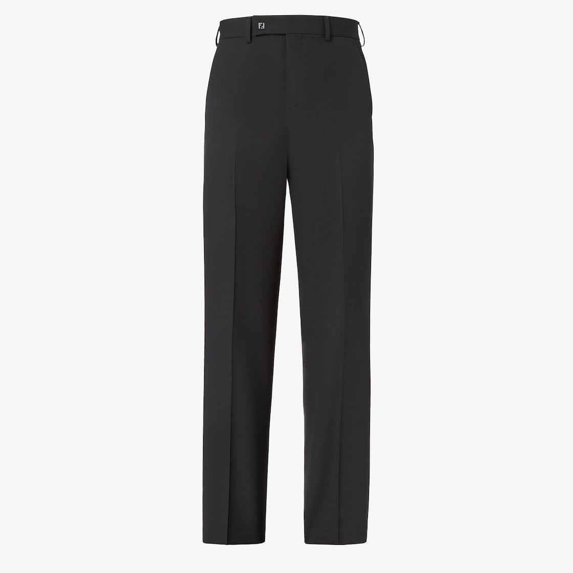 Zigarettenhose mit seitlichen Taschen. Bügelfalte und Gürtelschlaufen am Bund. Verdeckter Reißverschluss und Verschlusshäkchen. Breite am Beinabschluss: 22 cm. Aus Wollgabardine in Schwarz. Geziert von einem Mikro-FF-Logo aus Metall in Palladium-Optik mit Knopf-Effekt an der Taille.