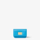 Kartenetui Fendi Way mit Tasche vorne und Drehschließe. Innenausstattung mit Blasebalgfach und zwei Kartensteckfächern auf der Rückseite. Aus Leder in Hellblau mit Innenseite aus Leder in Beige gefertigt. Beschläge aus Metall mit Finish in Gold-Optik.