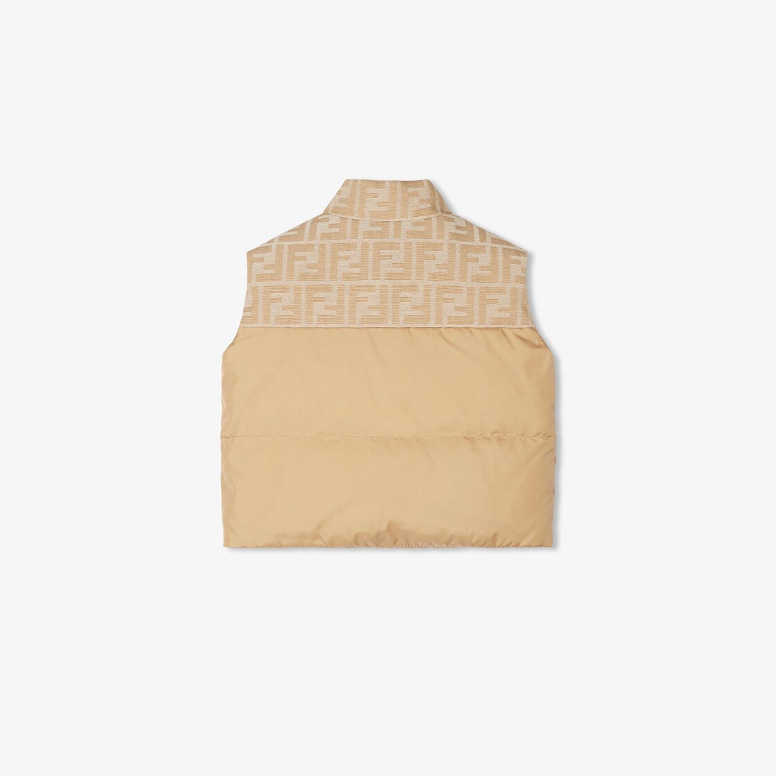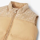 Ärmellose Baby-Weste aus Nylon in Beige mit Detail aus Jacquard-Stoff mit farblich abgestimmtem FF-Logo an den Schultern. Fendi-Stickerei vorne und Futter aus Daunen.