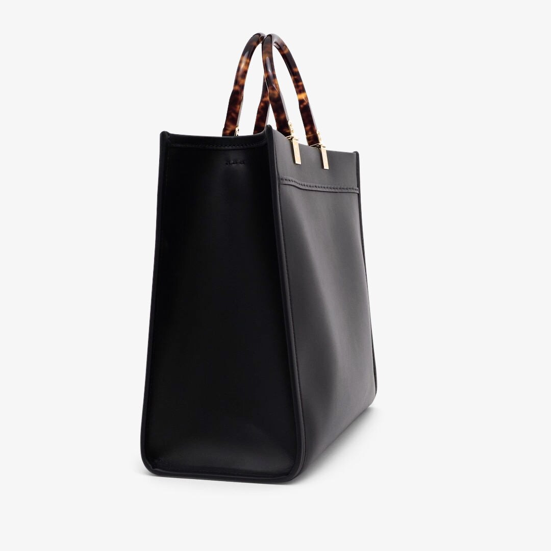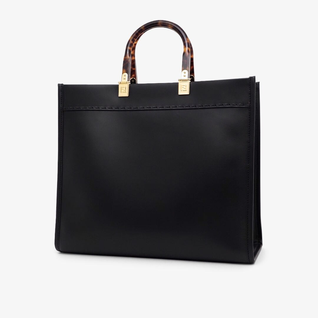 Mittlere Tasche Sunshine Shopper aus Leder in Schwarz mit Heißdruck „FENDI ROMA“ und steifen Griffen aus Plexiglas mit Schildpatt-Effekt.