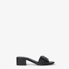 Sandales à large bride. En cuir foulonné couleur taupe et surpiquées de grands points ton sur ton cousus main, emblème du travail Selleria iconique que les artisans Fendi perpétuent depuis 1925. Ornées du motif FF Baguette ton sur ton. Talon large habillé de cuir.