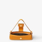 En cuir de veau orange foncé, doté du fermoir FF en cuir ton sur ton et orné de grosses surpiqûres apparentes ton sur ton cousues main, typiques de la célèbre finition Selleria perpétuée depuis 1925 par les artisans Fendi.