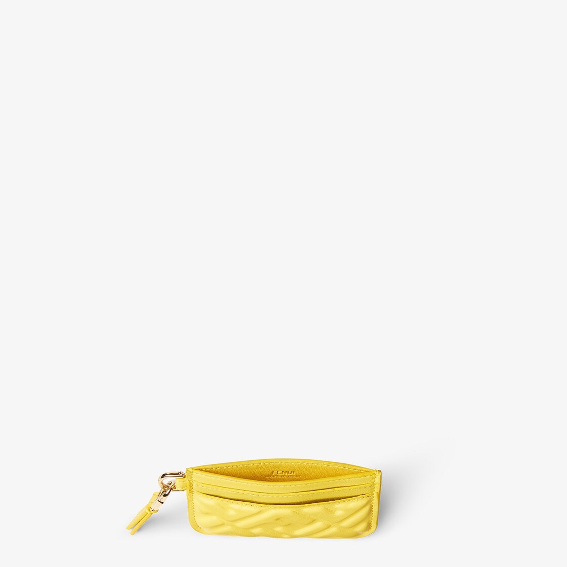 Porte-cartes plat en cuir nappa jaune genêt avec motif FF