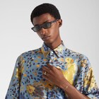 Chemise à manches courtes coupe oversize. Col semi-italien et bas droit. Fermeture par boutons dissimulés. En soie avec imprimé F all-over dans les tons bleu pétrole et jaune.