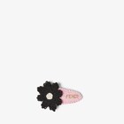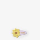 Pince à cheveux en crochet de coton lilas avec détail de fleur contrastée dans les tons jaunes. Inscription Fendi en métal à finition dorée.