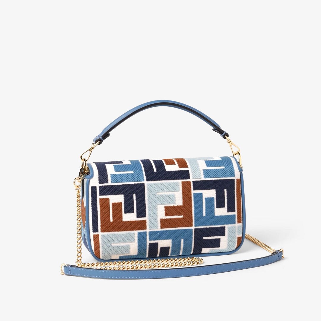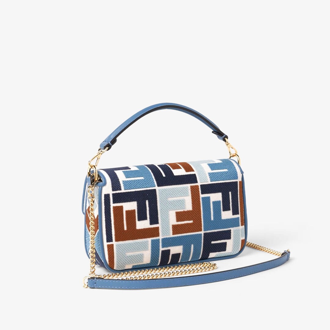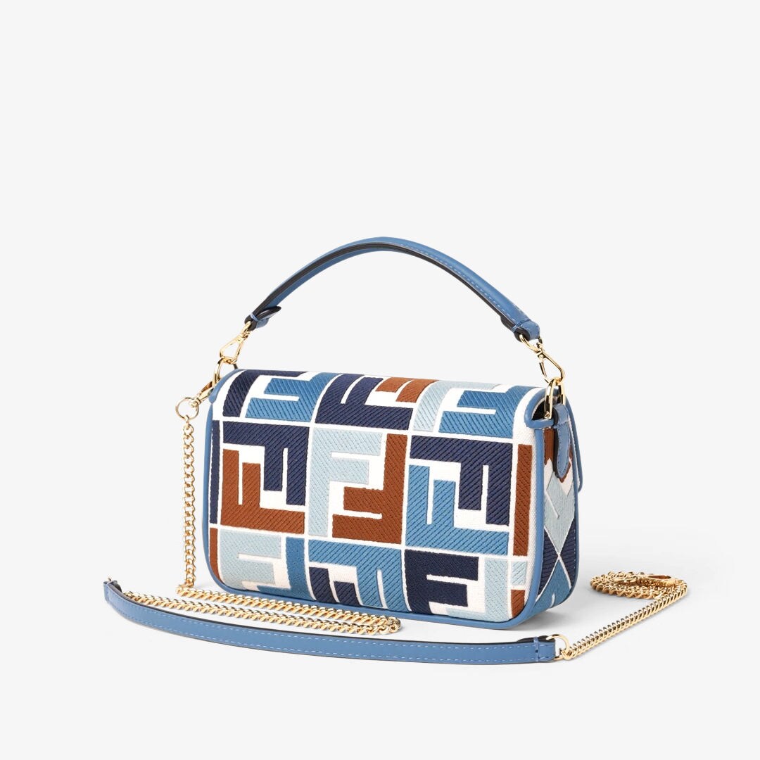Sac iconique Baguette petit format, en toile beige avec motif FF emblématique brodé en relief avec du fil multicolore. Détails en cuir de veau et fermoir FF.