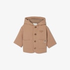 Giacca orsetto baby in tessuto cotton twin marrone chiaro. Cappuccio con orecchie, bottoni sul davanti ed etichetta in pelle con orsetto Fendi sulla tasca.