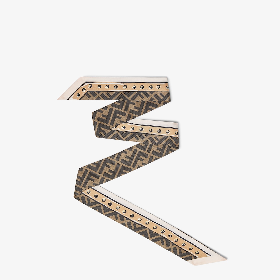 Wrappy dal design double-face. Da indossare intorno al collo, annodato al polso o per accompagnare le borse con un tocco di colore. Realizzato in seta. Entrambi i lati sono decorati con stampa logo FF e cornice laterale, nei toni del marrone e del rosa.