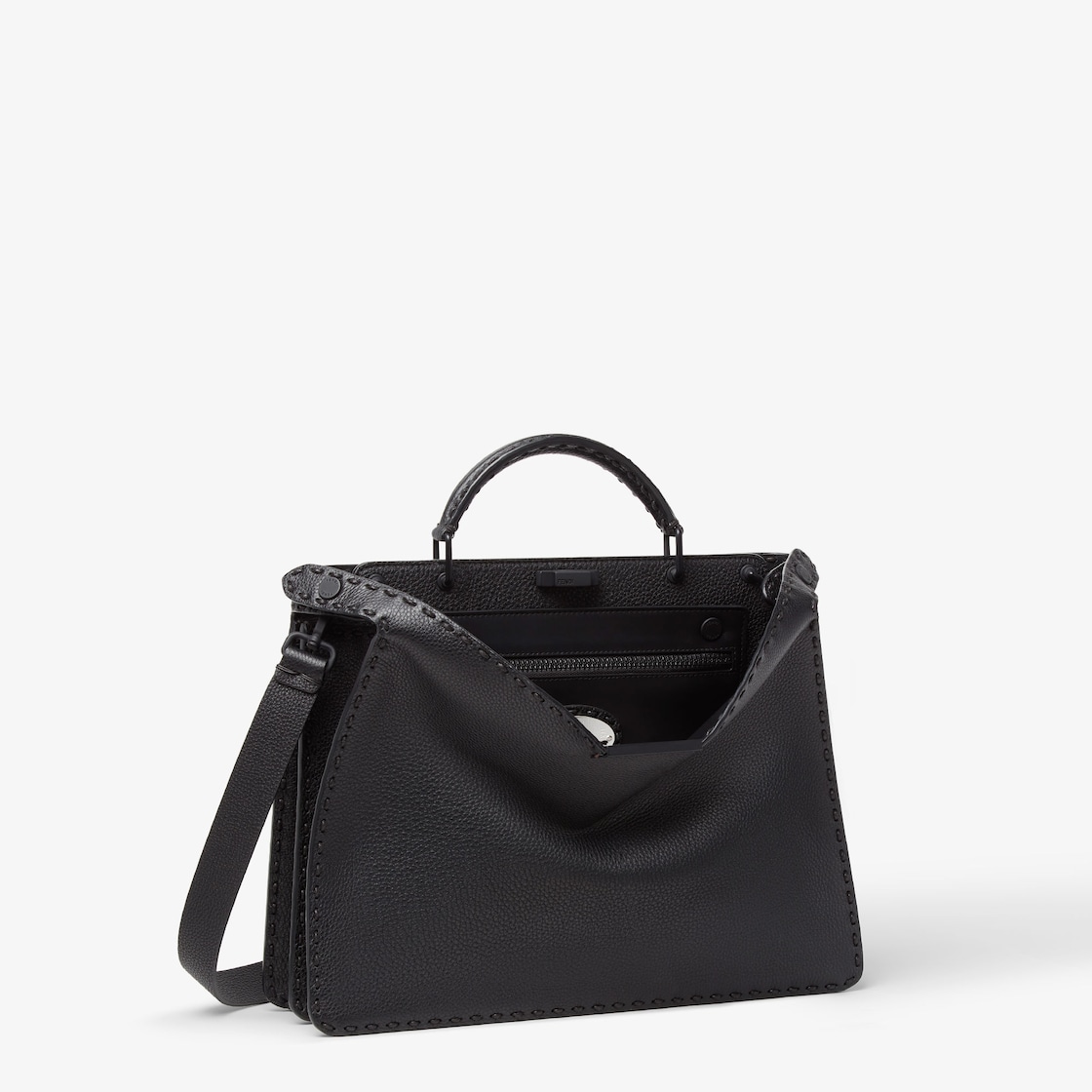 Borsa Peekaboo ISeeU misura media realizzata in Cuoio Romano di colore nero, rifinita con 713 macro impunture tono su tono fatte a mano, emblema dell’iconica lavorazione Selleria, tramandata dagli artigiani Fendi sin dal 1925.