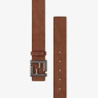 Cintura con fibbia Squared FF sottile. Realizzata in suede marrone. Interno in pelle marrone chiaro. Accessori metallici con finitura rutenio satinato.