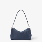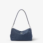Medium Fendi Lui bag with a soft design, made of dark blue padded FF Nylon with a shiny and lightly embossed texture and dark blue smooth calf leather. Decorated with a long zip fastening with double slider and FF metal appliqués on the corners.