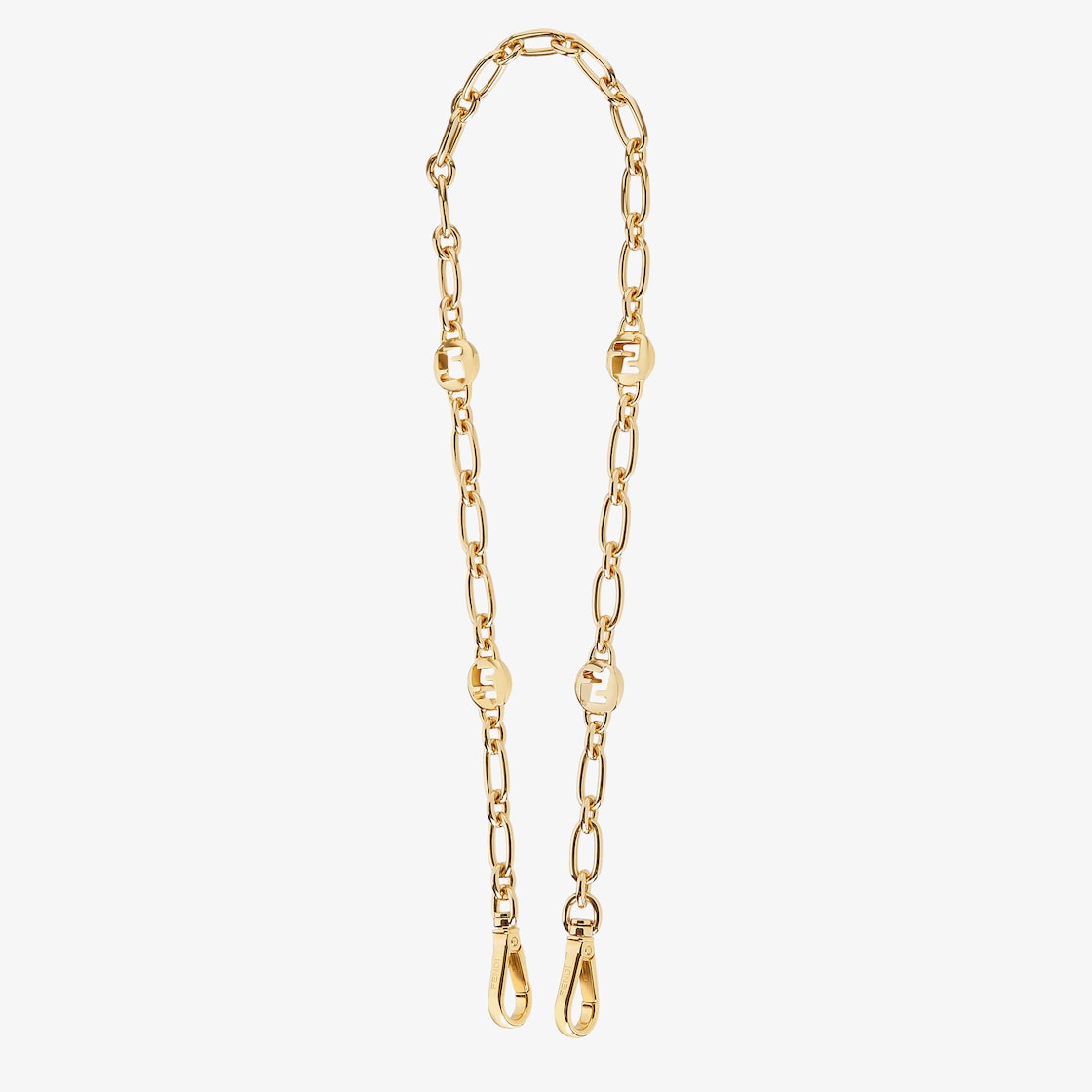 Long chain shoulder strap with double snap hook, to use in combination with any bag with hooks. Made of gold-finish metal embellished with four Fendi Sphera logo elements.