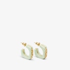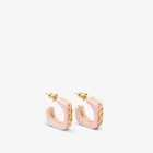 Linear and elegant hoop earrings embellished with FENDI lettering in a gold-finish metal. Made of gold-finish metal and pastel pink resin. Bar closure.