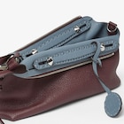 The reversible design is crafted in Cuoio Romano leather, calfskin with a characteristic natural grain produced with a metal-free tanning process. One side is burgundy, the other mercury blue – a refined expression of the Fendi duality that combines timeless savoir-faire with contemporary creativity.