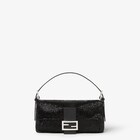 Since its debut in 1997, it has become a brand icon, now reimagined for the Fall/Winter 2026-27 collection drawing on its original version, number 26424. Entirely embroidered by hand with 60,000 black micro bugle beads, requiring over 86 hours of artisan craftsmanship. The Baguette® bag features a handle and shoulder strap in black calfskin, which are adjustable and removable for maximum versatility, as well as the signature FF palladium-finish buckle. The accessory features a front flap with magnetic clasp, an interior lined throughout in tone-on-tone satin and an internal zipped pocket. Re Edition plaque and palladium-finish metal details.