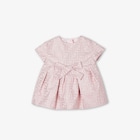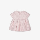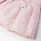 Baby dress in pink cotton jacquard with lurex, featuring a front bow and all-over tone-on-tone FF logo.