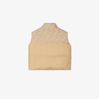 Sleeveless baby gilet in beige nylon, with jacquard fabric detail featuring tone-on-tone FF logo across the shoulders. Internal down padding and Fendi embroidery on the front.