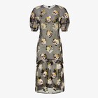 Midi dress fitted at the waist with crew-neck and short puff sleeves. The flounce on the hem with an elasticated strap allows you to adjust the fit. Elasticated cuffs and matching removable slip. Fastened with full-length zip on the back. Made of lightweight black technical organza. The Fendi Bouquet collection motif comes in an all-over contrasting print and mirror-effect 3D appliqué details in different colours.
