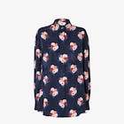 Flowing long-sleeved shirt. Central pleat on the back and buttoned cuffs. Concealed button fastening. Made of dark blue silk FF jacquard. Embellished with the collection’s Fendi Bouquet motif printed all over in red, pink and blue.