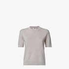 Fitted short-sleeved crew-neck jumper. Made of a light pink wool and silk yarn jacquard with the iconic FF motif all over. Finished with ribbed edges.