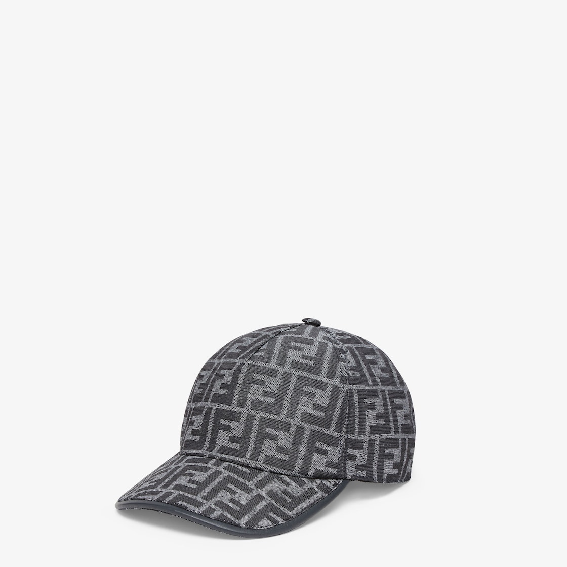 Baseball cap with semi-stiff peak in jeans blue-coloured FF jacquard. Embellished with metal Fendi lettering on the back strap.