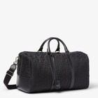 Reisetasche in mittlerer Größe aus wattiertem FF-Nylon in Schwarz mit glänzender Struktur mit leichter Relief-Optik. Anhänger mit aufgedrucktem Fendi Roma-Logo und Besatz aus Kalbsleder in Schwarz.