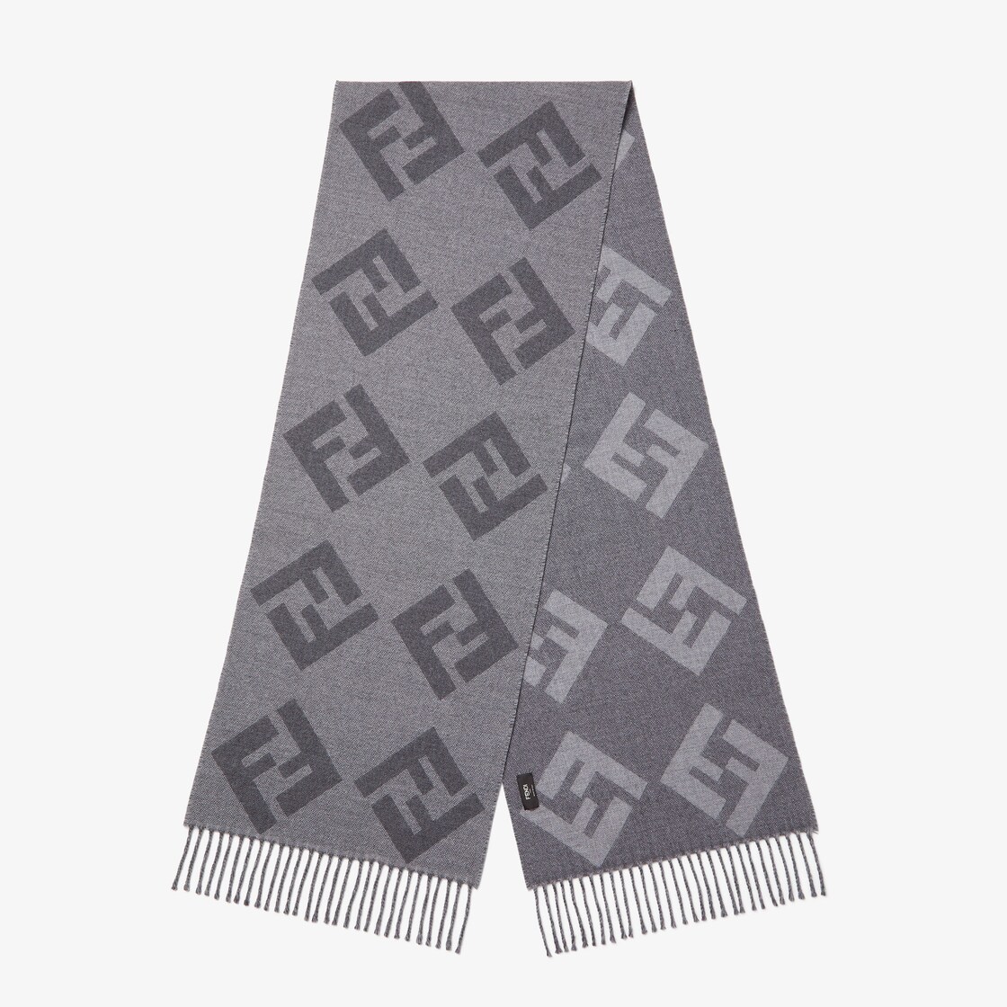 Rechteckiger Schal aus Wolle mit durchgehendem, diagonalem Makro-FF-Motiv in zwei verschiedenen Grautönen. Verziert mit Fransen am Saum.