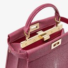 Innenseite mit farblich abgestimmtem weichem Nappaleder gefüttert, mit zwei Innenfächern, die durch eine feste Trennwand getrennt sind, und einer Innentasche. Steg, Verschluss und Beschläge aus Metall mit Finish in Gold-Optik.