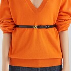 Schmaler Gürtel mit Schlaufe und diagonaler FF-Schmuckschließe. Aus Lammleder in Schwarz mit Lack-Optik. Beschläge aus Metall mit Finish in Gold-Optik.