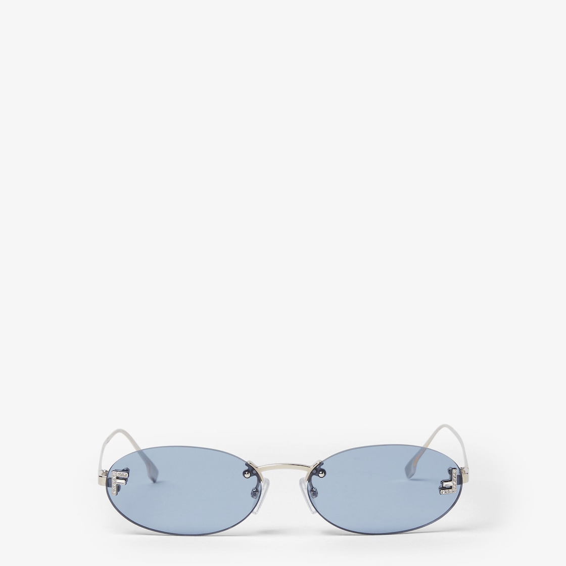 Sonnenbrille Fendi First Crystal in ovaler Form mit einer rahmenlosen Konstruktion aus Metall in Palladiumfarben. Hellblau getönte Gläser mit Micro-F aus Kristallen. Verstellbare Nasenpads.