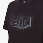 T-Shirt in Slim Fit mit Rundhalsausschnitt und kurzen Ärmeln. Aus 100 % Baumwolle in Schwarz. Mit farblich abgestimmtem, aufgesticktem Fendi Pop Pois Motiv vorne, inspiriert vom Falena Dots Muster der Kollektion.