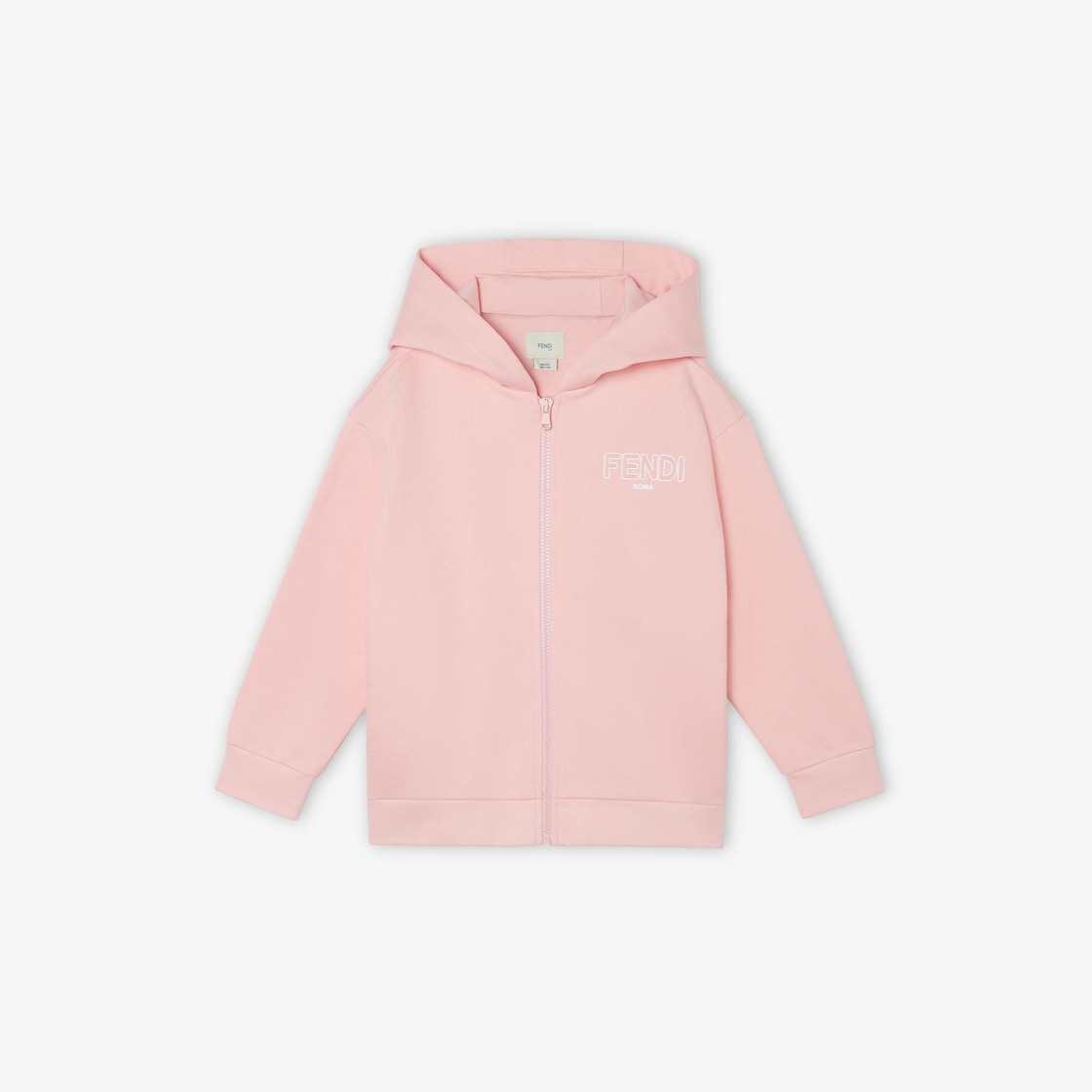 Junior-Sweatshirt aus Jersey in Rosa mit Kapuze, Öffnung mit Reißverschluss und kleinem, farblich abgestimmtem Fendi-Schriftzug-Print auf der Vorderseite.