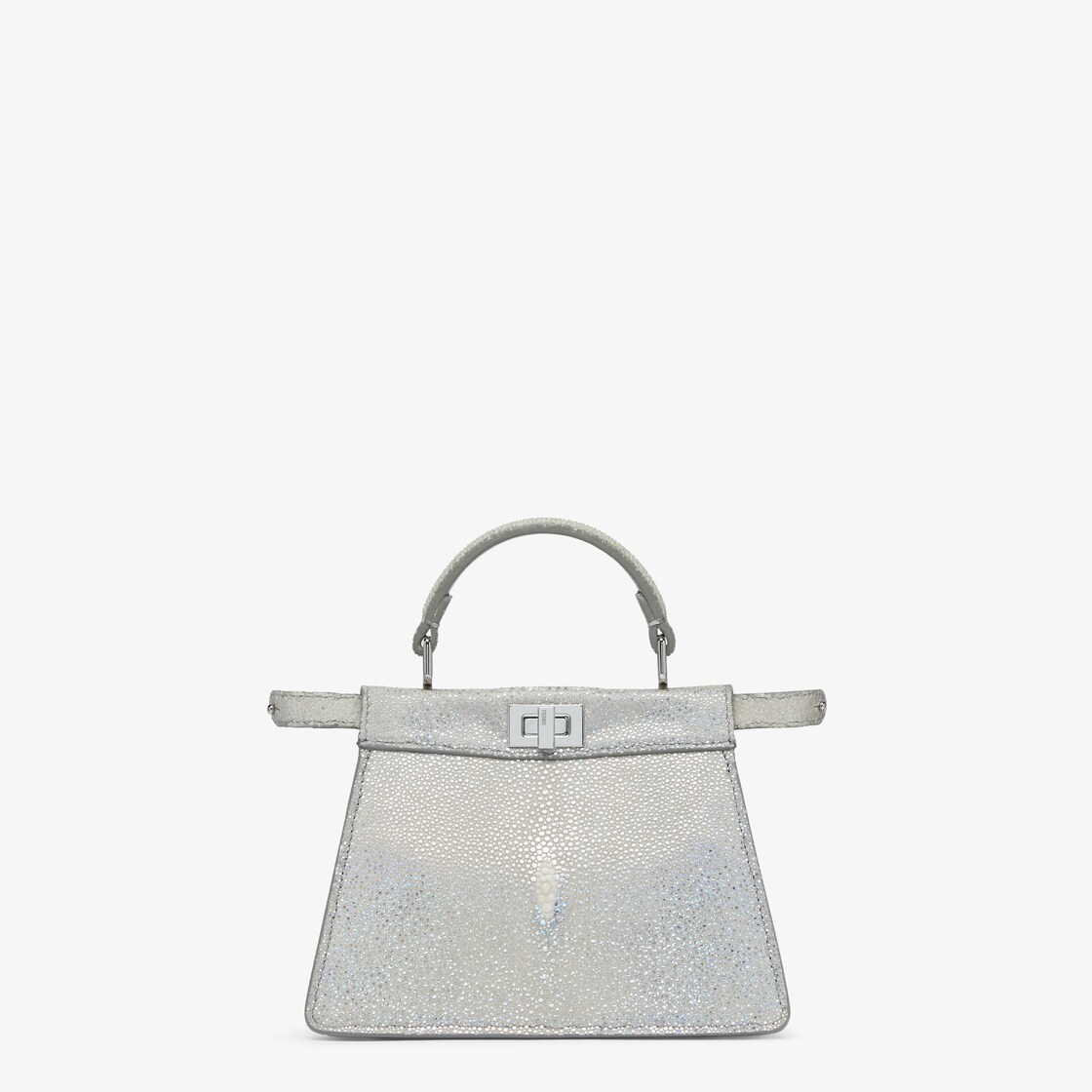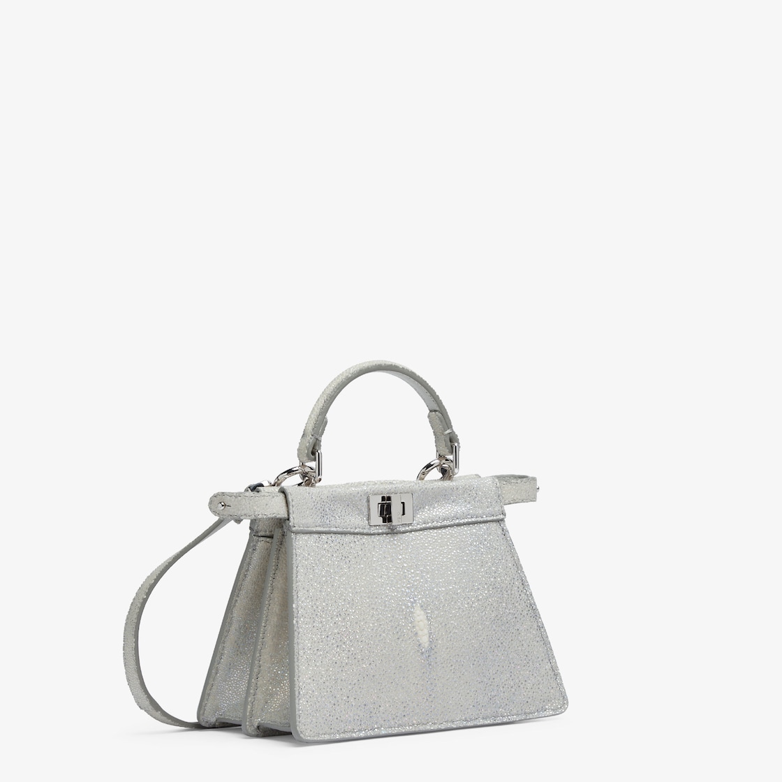 Aus edlem Metallic-Rochenleder in Silberfarben, mit einem raffinierten schillernden Effekt.