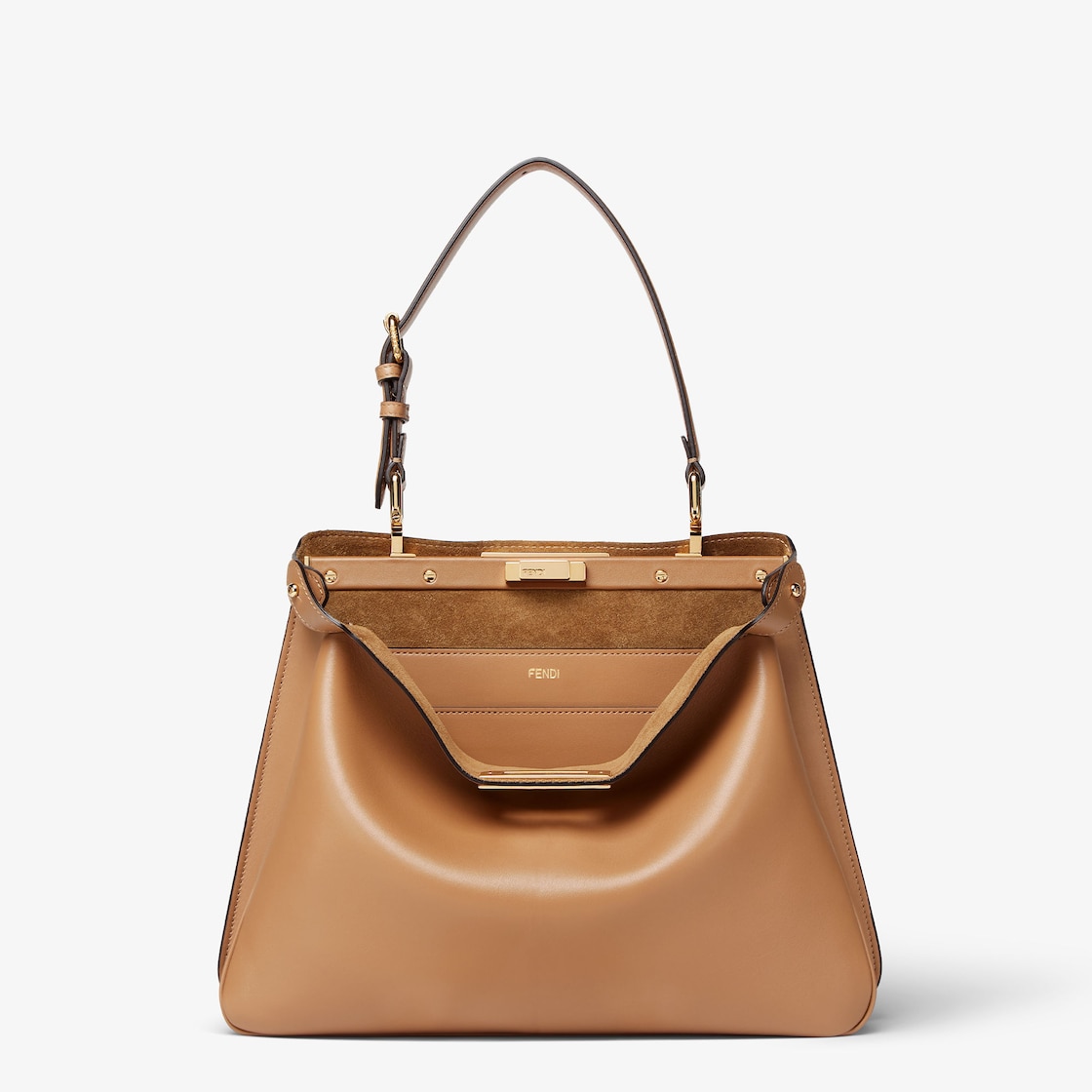 Ikonische Tasche Peekaboo Soft in mittlerer Größe, Inbegriff der Handwerkskunst und Kreativität von Fendi. Die Peekaboo, eine zeitlose Ikone, gibt es seit 2009. Wie das namensgebende Kuckuck-Kinderspiel in englischer Sprache „Peek-a-boo“ spielt die Tasche mit dem Wechsel zwischen sichtbarer äußerlicher und verborgener innerlicher Schönheit.