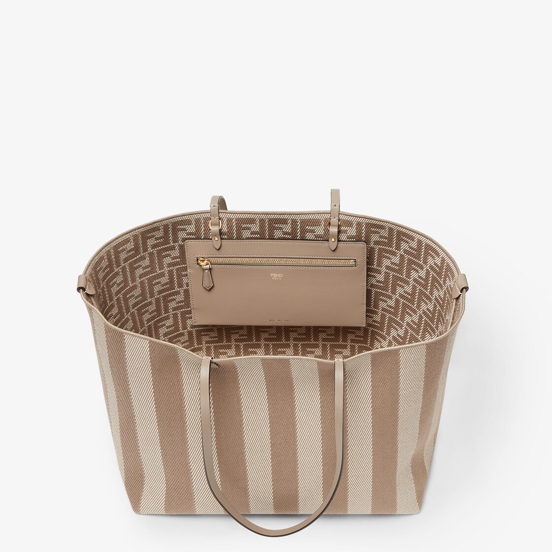 Wendbarer Shopper aus Gewebe mit Pequin-Streifen und FF-Detail in Taupe