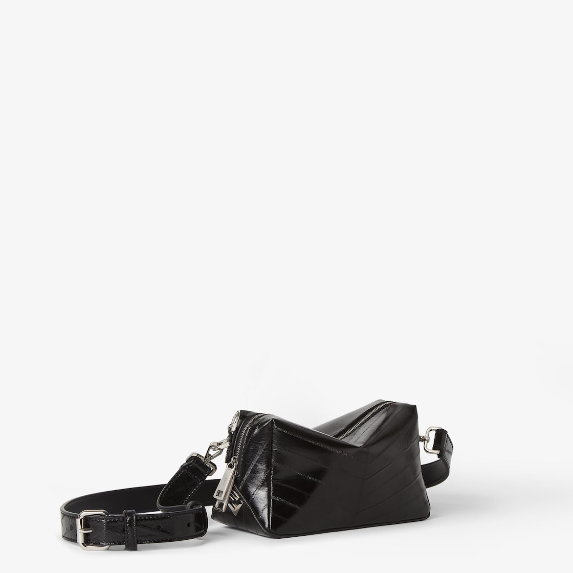 Weiche Tasche Fendi Lui in kleiner Größe aus edlem Missina-Leder in Schwarz mit glänzendem Finish und Intarsie, durch die ein Chevron-Motiv entsteht. Die natürlichen Eigenschaften des Leders machen jede Tasche zu einem Unikat. Mit langem Zwei-Wege-Reißverschluss und FF-Applikationen aus Metall an den Ecken.