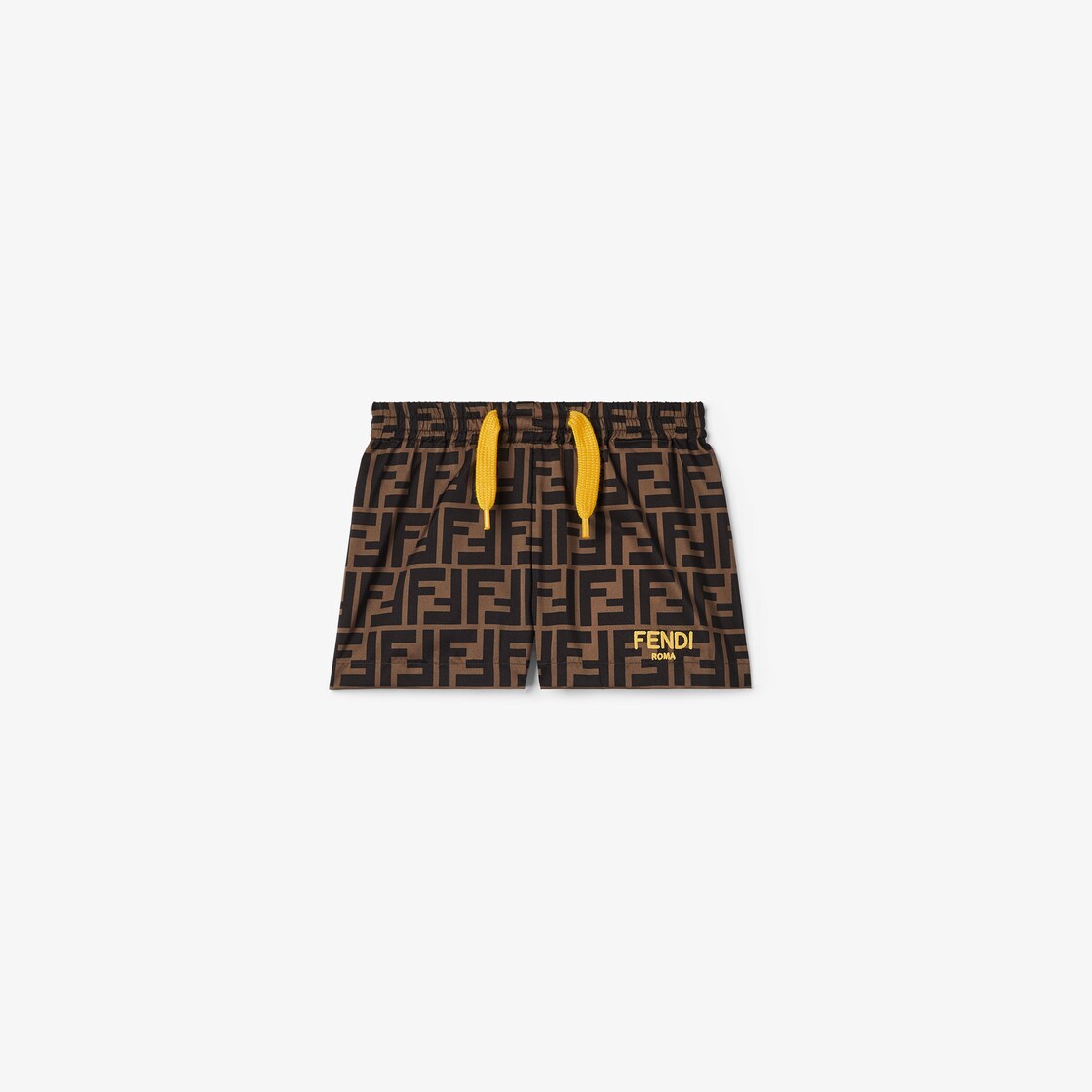 Baby-Badehose aus Nylon mit durchgehendem FF-Print in Tabakfarben, Kordelzug am Bund und Fendi-Stickerei in Limonengelb vorne.
