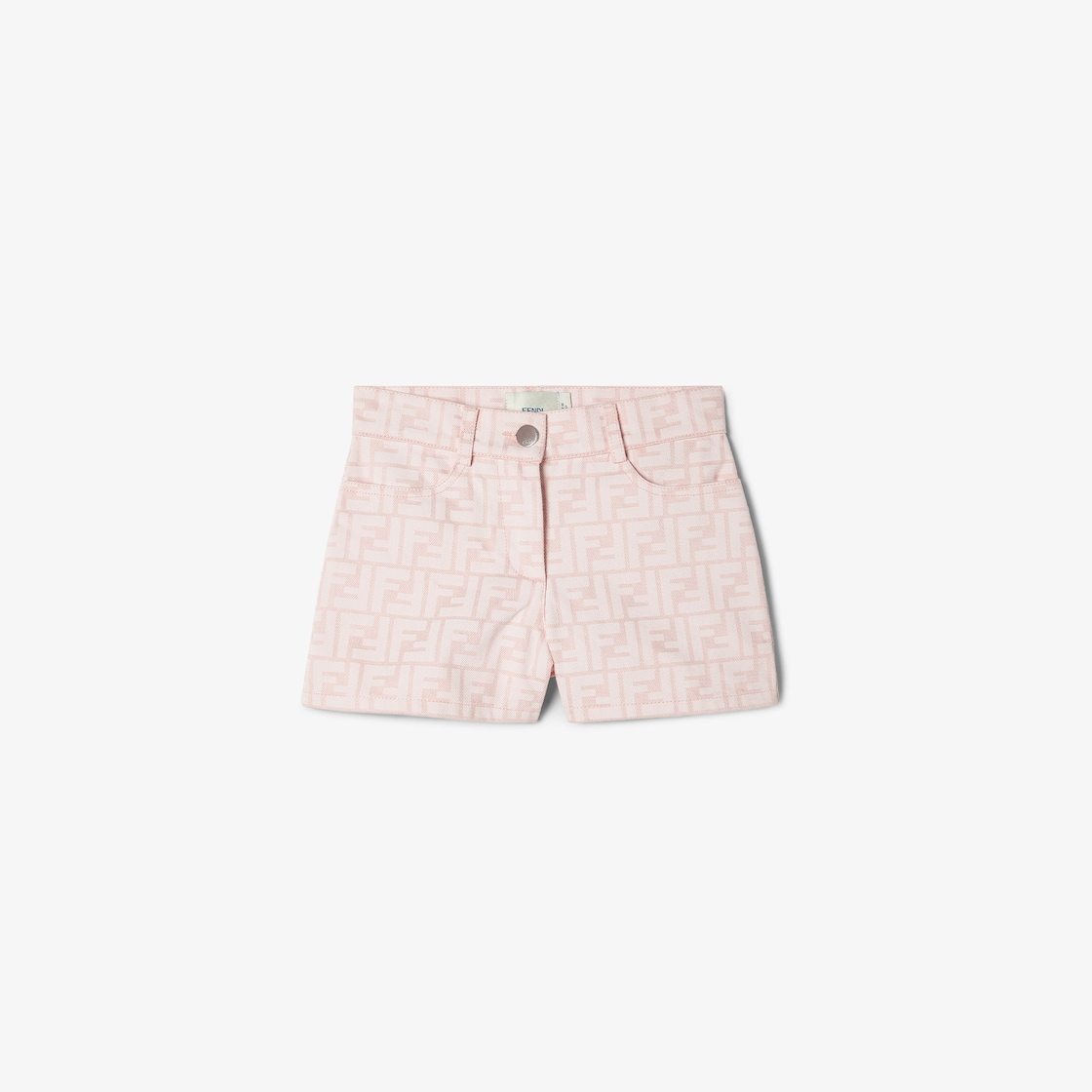 Junior-Shorts aus Baumwoll-Denim in Rosa mit durchgehendem, farblich abgestimmtem FF-Logo-Print.