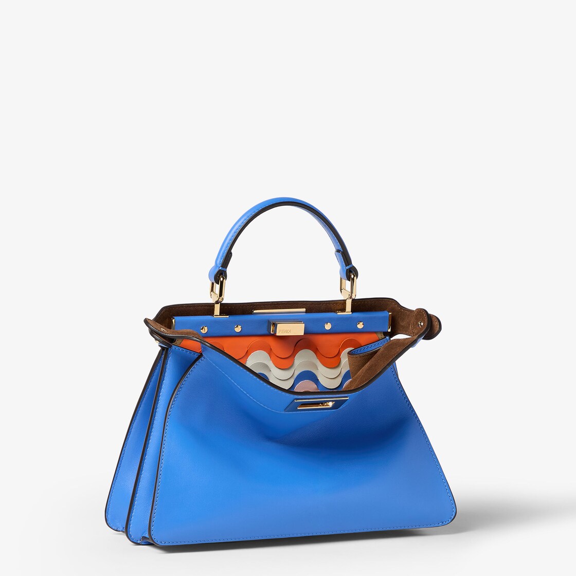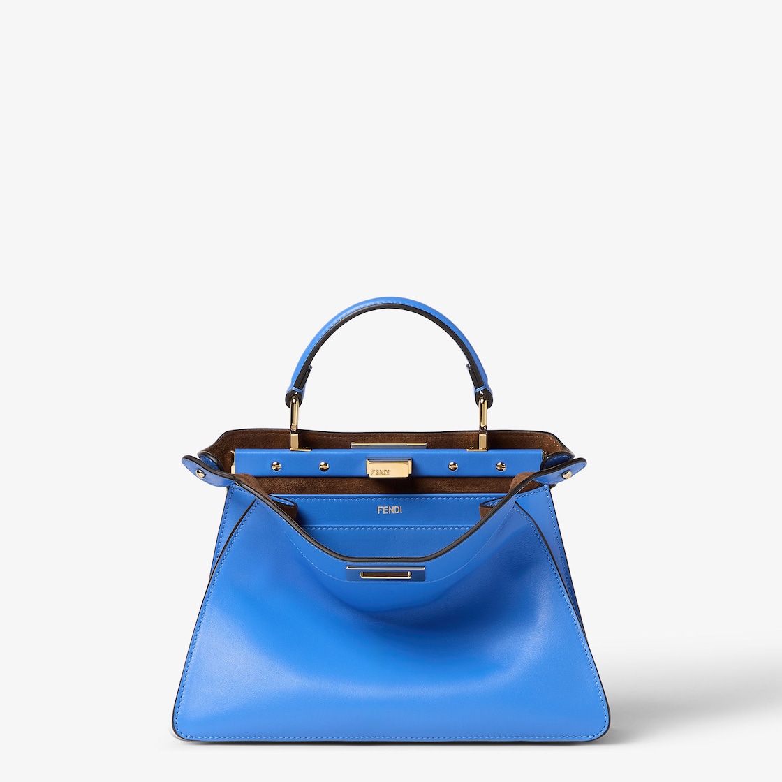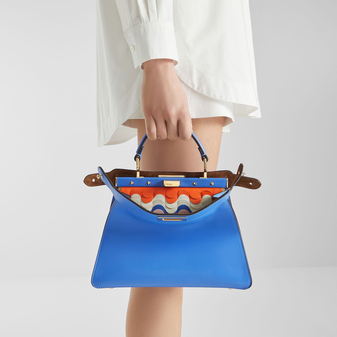 Kultige Tasche Peekaboo ISeeU in kleiner Größe, der Inbegriff der Handwerkskunst und der Kreativität von FENDI. Die Peekaboo, eine zeitlose Ikone, gibt es seit 2009. Wie das namensgebende Kuckuck-Kinderspiel in englischer Sprache „Peek-a-boo“ spielt die Tasche mit dem Wechsel zwischen sichtbarer äußerlicher und verborgener innerlicher Schönheit.