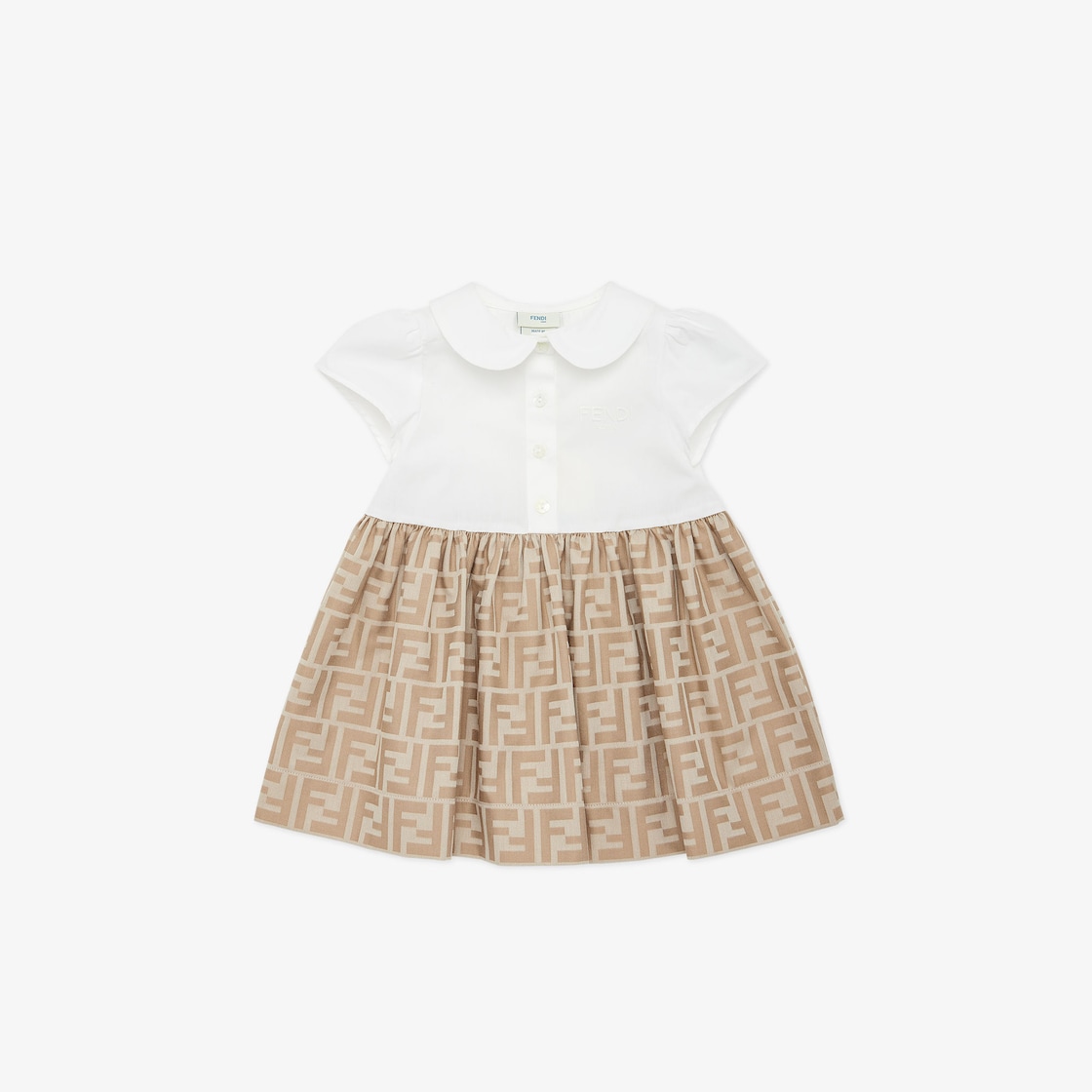 Baby dress with white poplin top and dainty buttons. Beige cotton jacquard skirt with all-over tone-on-tone FF logo.