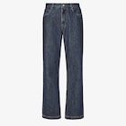 Straight-cut five-pocket trousers. Regular-fit, high-waisted style. Zip and button fastening. Width at the hem: 24 cm. Made of blue-jeans coloured fabric. Lightly padded pocket on the back right with all-over quilted FF motif. Finished with logo rivets, contrasting stitching and logo tab on the back.