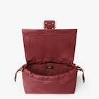 Dispone de un amplio compartimento interior forrado en gamuza con cierre de cordón ajustable, lazos de piel tono sobre tono y detalles personalizados.