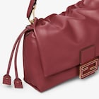 Confección en napa suave color burdeos y adornado con cierre FF con aplicación de piel tono sobre tono.
