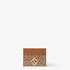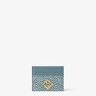 Tarjetero FF Diamonds con logo FF diagonal, compartimento central y 6 ranuras para tarjetas. Confección en piel de becerro azul claro mercurio, con motivo Peppered Falena estampado en tono blanco. Detalles de piel color liso tono sobre tono. Accesorios de metal con acabado dorado.