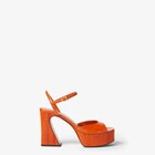 Sandalia de plataforma con banda sobre los dedos. Confección en mixino brillante color marrón. Correa regulable en el tobillo con hebilla de metal dorado. Presenta tacón de silueta contorneada, forrado en mixino tono sobre tono y barra de metal dorado con logo Fendi grabado.