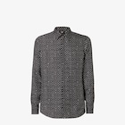 Camisa de corte regular con cuello semiitaliano. Cierre delantero con botones ocultos. Confección en seda negra, con micromotivo all over Falena Dots estampado en tonos blancos.