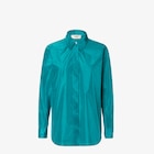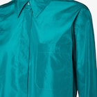 Camisa atemporal de corte extragrande. Presenta manga larga con hombro caído y puño de camisa. Bajo asimétrico redondeado. Cierre con botones ocultos. Confección en tafetán de seda color azul claro.