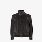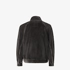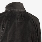 Cazadora de cuello alto con manga larga raglán. Bolsillos laterales ribeteados en diagonal. Cierre delantero con cremallera de doble cursor. Confección en pana de algodón, con lavado a la piedra y aclarado color negro. El interior está acabado con estampado FF efecto denim. Accesorios de metal con acabado paladio.